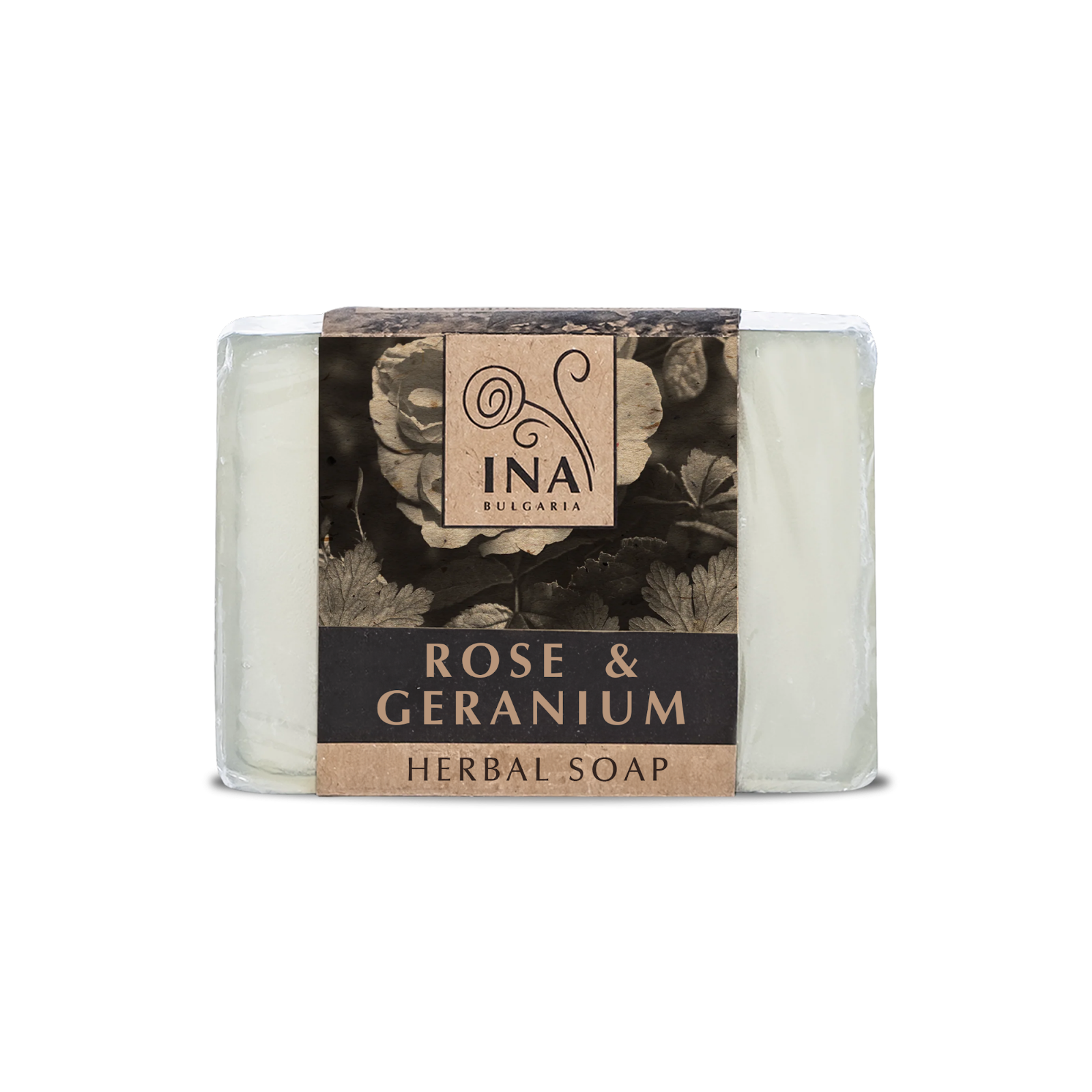 + Dāvana Zāļu ziepes ar rožu damaskānu eļļu un ģerāniju - barojoša iedarbība