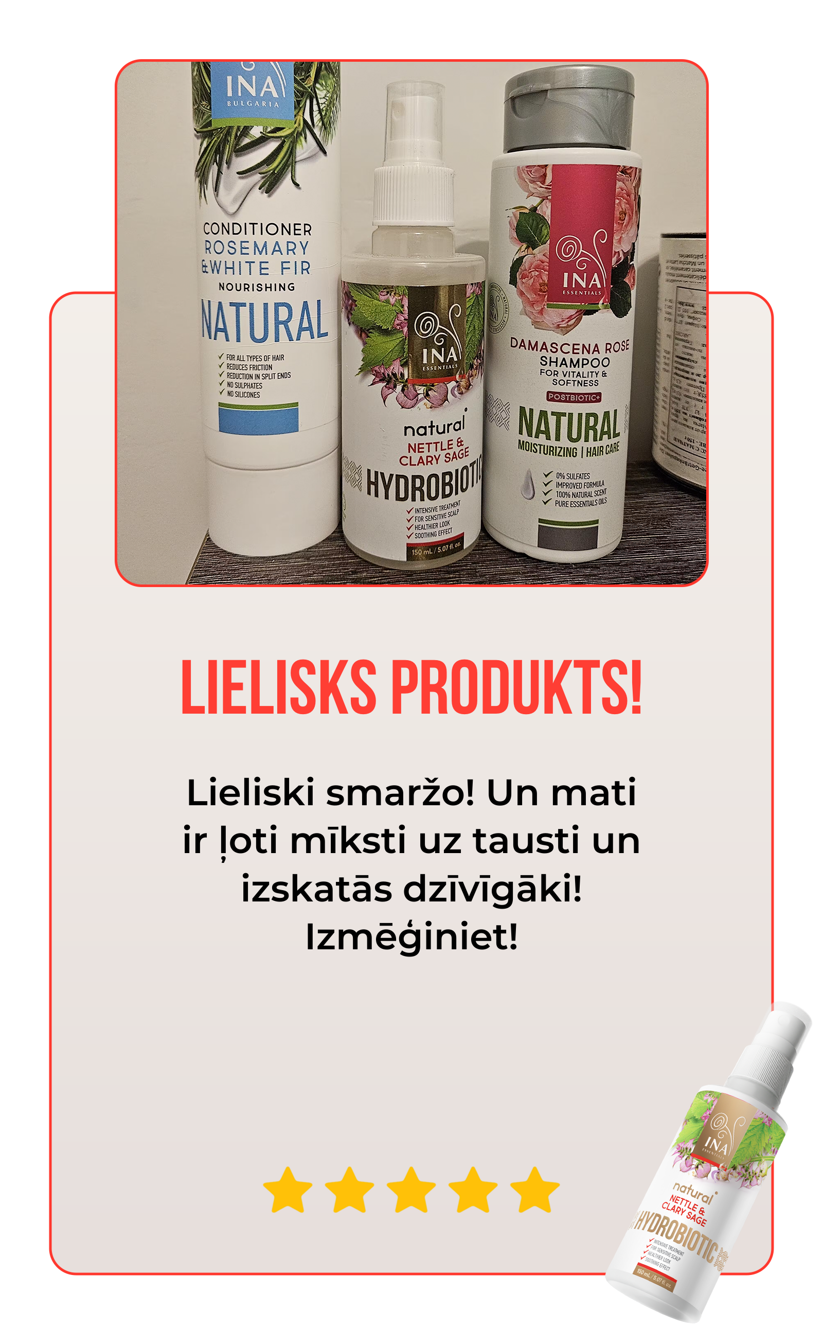 Mēs ceram, ka jums patīk mūsu ģimenes zīmola InaEssentials produkti. Ja tomēr tie nav attaisnojuši jūsu cerības, lūdzu, sazinieties ar mums.