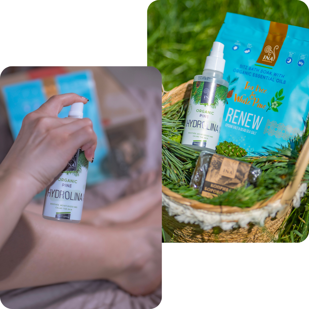 - 2. solis: Pēc tam lietojiet Veimuta priežu ūdeni - Hydrolina un ļaujiet tam iedarboties, kamēr guļat,, kad āda dabiski atjaunojas un labāk uzsūc produkta labvēlīgās īpašības.