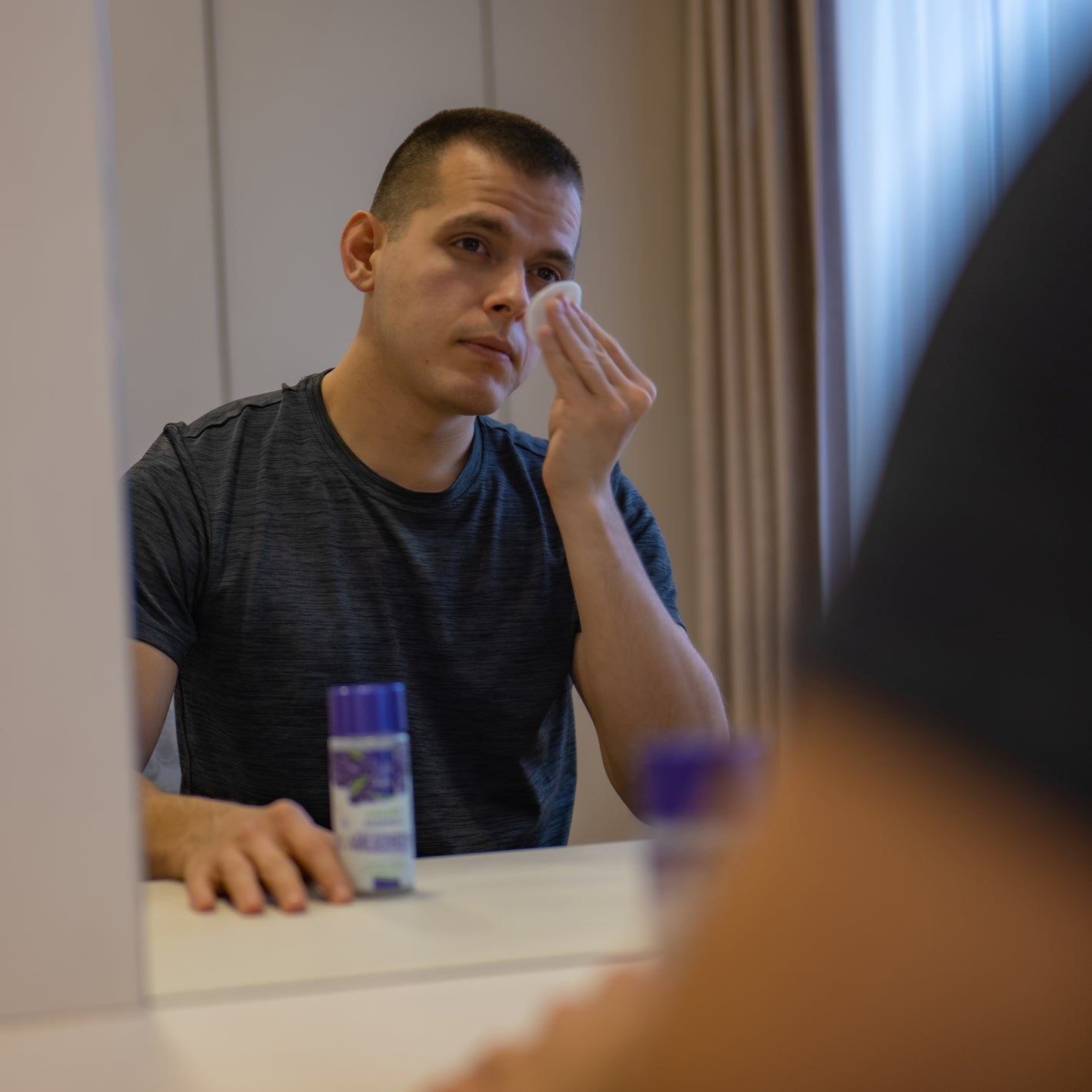 Samitriniet vates tamponu ar nelielu produkta daudzumu un notīriet seju.