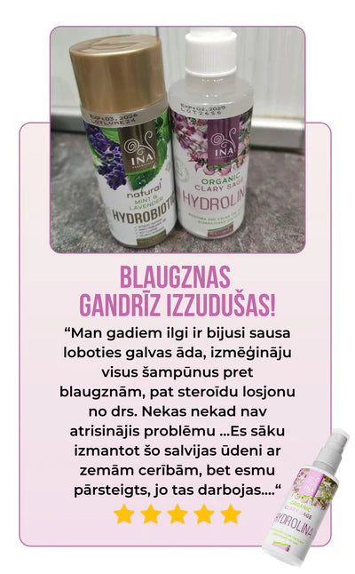Regulāri lietojot Salvijas Hydrolina, tiek kontrolētas blaugznas un seboreja.