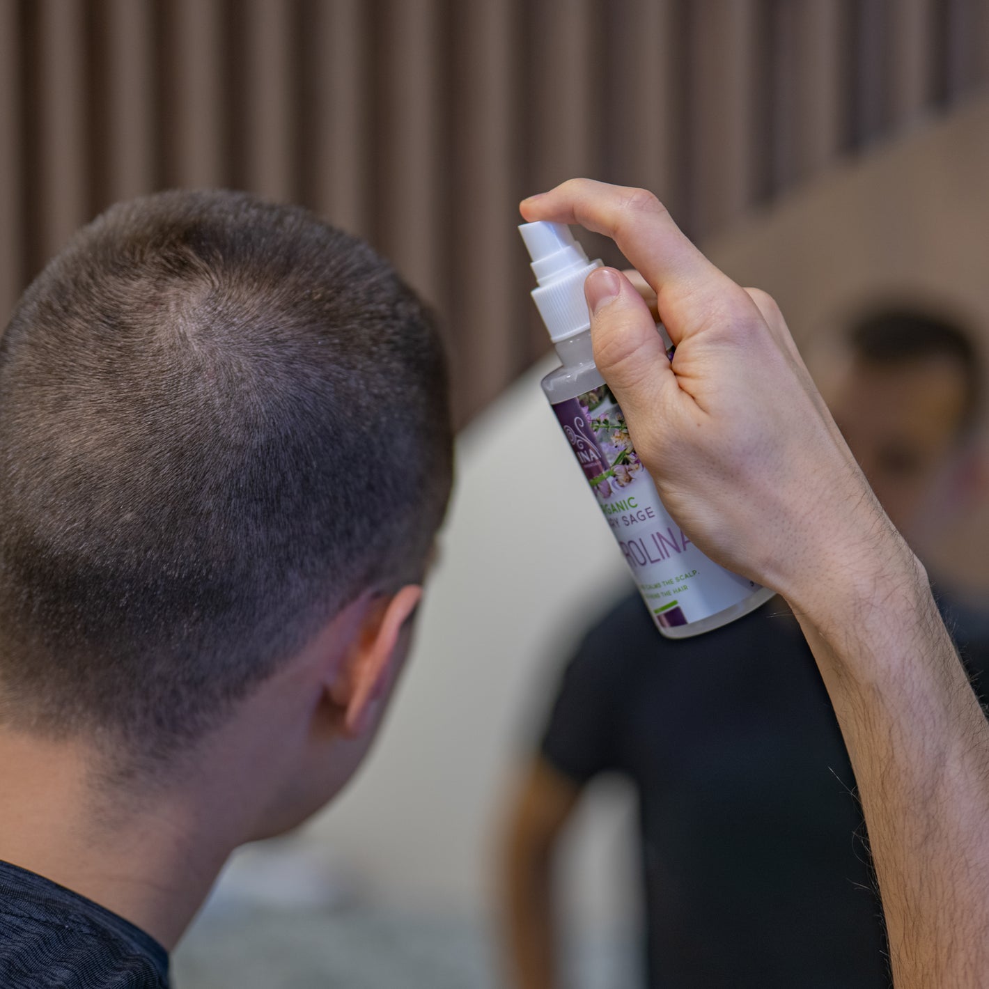 Pateicoties spēcīgajām pretmikrobu un pretiekaisuma īpašībām, Salvijas Hydrolina brīnumaini iedarbojas uz jūsu galvas ādu un matiem. Salvija satur linalool, geraniol, linalyl acetate, caryophyllene, un limonene, kas palīdz kontrolēt Malassezia - sēnītes, kas saistīti ar blaugznām un seborejas dermatītu. Uzturot galvas ādas mikrobiomu veselīgu, Salvijas Hydrolina efektīvi mazina un novērš Malassezia uzliesmojumus, kas saistīti ar šīm slimībām.