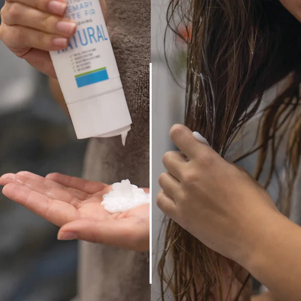 - 2. solis: Pēc tam barojiet matus ar mūsu matu kondicionieri ar rozmarīnu un balto egli. Tas baro un stiprina matus, samazinot berzi, palielinot spīdumu un veicinot veselīgu matu augšanu.