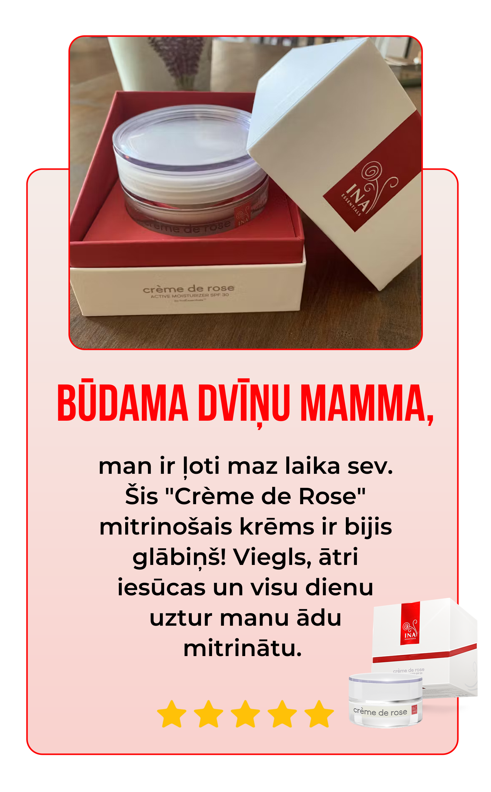 Crème de rose - aktīvs Mitrinošs krēms ar SPF30 - ļoti bagātināts ar organisko Rožu ēterisko eļļu