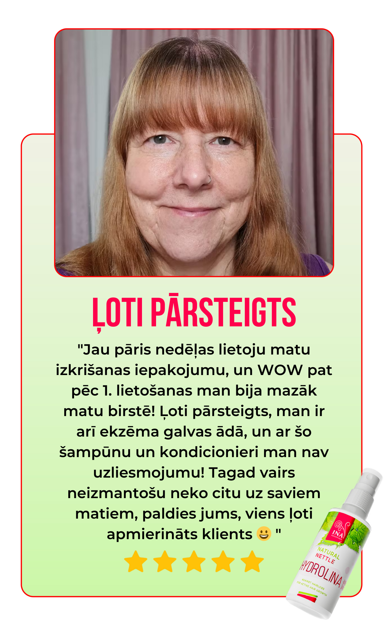 Pēc pirmā lietošanas mana matu izskats jau ir ievērojami uzlabojies! Manas galvas āda nejūtas kairināta, tas ir apbrīnojami.