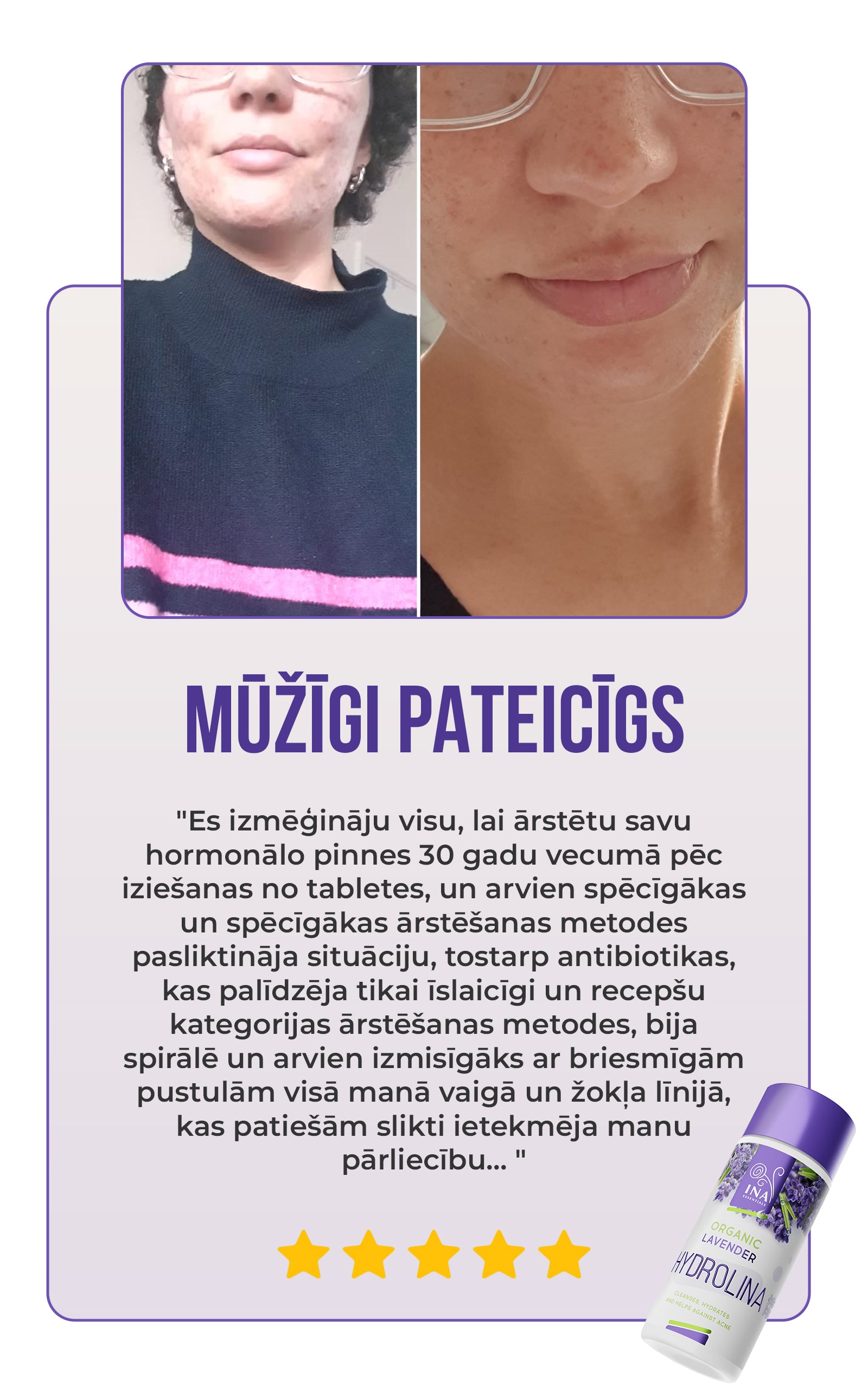 from 320 reviewsIegādājos Lavandas Hydrolina komplektu savai meitai. Viņa to lieto jau divas nedēļas, un jau tagad redzam uzlabojumus, un tas arī uzlabo viņas pašapziņu. :)